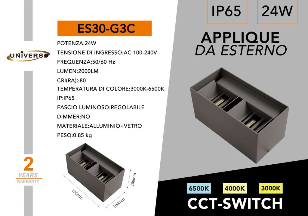 Apllique da Muro Doppia Emissione LED 24W Tonalità Luce 3in1 CCT