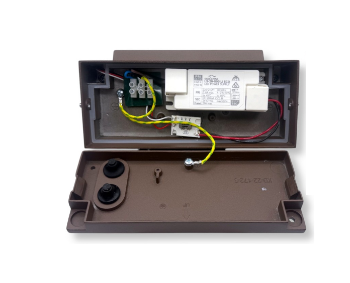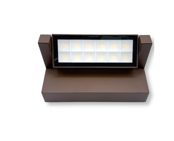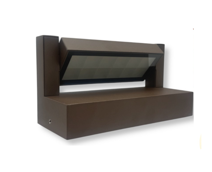 SPECIFICHE TECNICHE • Potenza: 21W • Tensione: AC 220-240V 50/60Hz • Fascio luminoso: 120° • Flusso luminoso: 1800 lm • Efficienza luminosa: 85 lm/W • Materiale: alluminio / vetro • Colore: colore bronzo (rosso ruggine) • Copertura: opaca • Grado di protezione: IP65 • Dimensioni: 108mm x 203mm x 80 mm