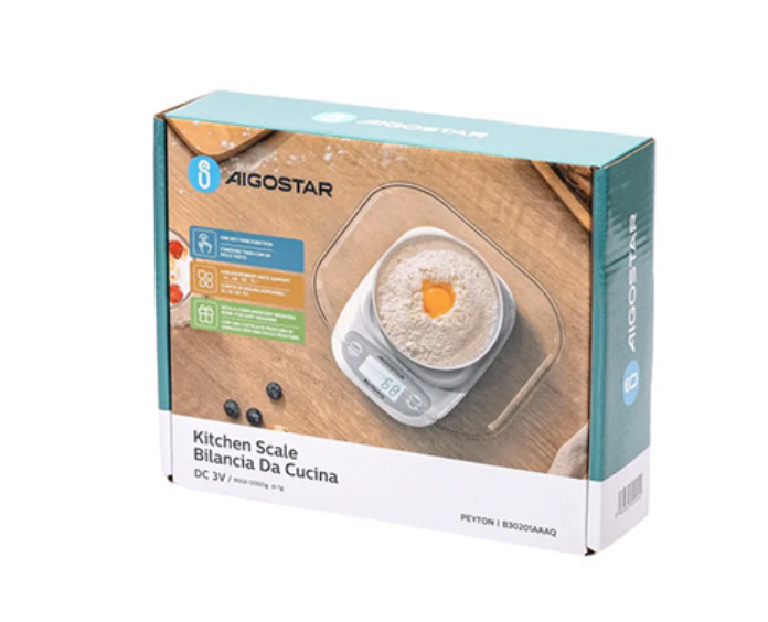Funzione tara con un solo tasto 4 unità di misura disponibili (g, lb, oz, tl) Con una ciotola di pesatura in omaggio per una facile pesatura Capacità di carico fino a 5kg Display LCD ad alta definizione Piedini antiscivolo Angoli arrotondati per maggiore protezione