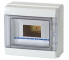 Centralino da incasso per 4/8 moduli con corpo grigio RAL 7036 e portello trasparente fumè. Con possibilità di doppio isolamento utilizzando i tappi opzionali, in materiale tecnopolimero isolante nonpropagante la fiamma e sportello in policarbonato.