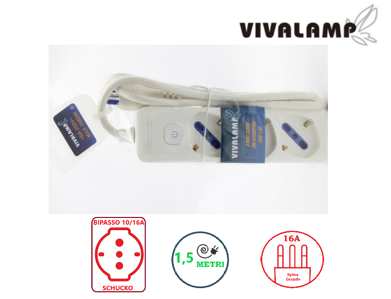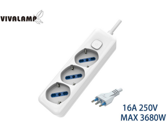Ciabatta Multipresa 3 Prese Bipasso/Schucko con Interruttore