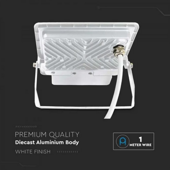 Chip LED: Chip LED Samsung SMD Tensione / Frequenza: AC 220-240V/50Hz Attacco: Cavi a saldare. Tecnologia dei Led: SMD Potenza: 50W Colore della luce: Bianco freddo (6500K) Flusso luminoso: 4000Lm - 80LM/W Apertura fascio luminoso: 100° Tipo di sensore: movimento PIR & crepuscolare. Campo di rilevamento: 140° ± 20° (regolabile). Distanza di rilevamento: 3 ~ 10 metri (regolabile). Durata di accensione: 10±3 sec ~ 7±2min (regolabile). Grado di protezione IP: Waterproof IP65 Vita media: 25.000h 5 Anni di garanzia. Dimmerabilità: NO Colore corpo: bianco. Dimensioni: 195x60x178mm Materiale: Alluminio ad alta resistenza. Vetro ad alta resistenza (cover satinata). Tipo di installazione: a parete. Lunghezza cavo: 1 metro. PF >0.90 CRI > 80