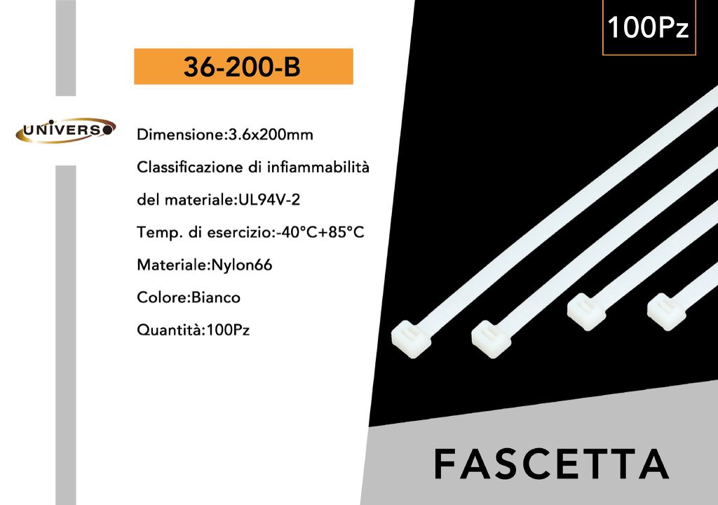 Fascette Autobloccanti in Nylon 3.6mm x 200mm Confezione 100pz