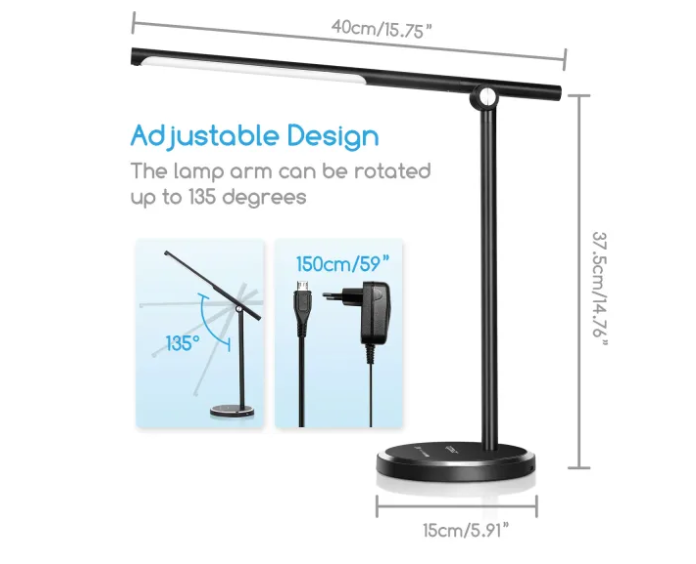 Flusso luminoso:400lm Colore del prodotto:Nero Digitare:Lampadina inclusa Voltaggio:220-240V~ Dimensioni:L400*W150*H375mm Dimming continuo; cinque impostazioni di regolazione del colore; interruttore touch control; Ricarica USB