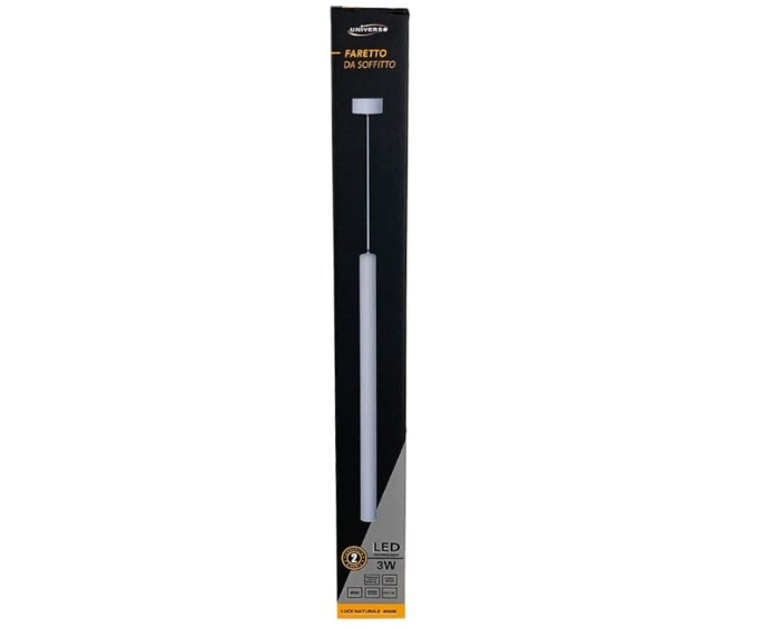 Lampada LED a sospensione con potenza di 3W e alimentazione a rete elettrica. Corpo in materiale metallico (Alluminio) di colore bianco / nero con forma cilindrica, dotata di cavo regolabile in lunghezza (max 200cm). Potenza di 3W, fascio luminoso di 30°, flusso luminoso di 300lm e rapporto di 100 lm/W. Questa lampada è l'ideale per poter essere installata in ambienti moderni.