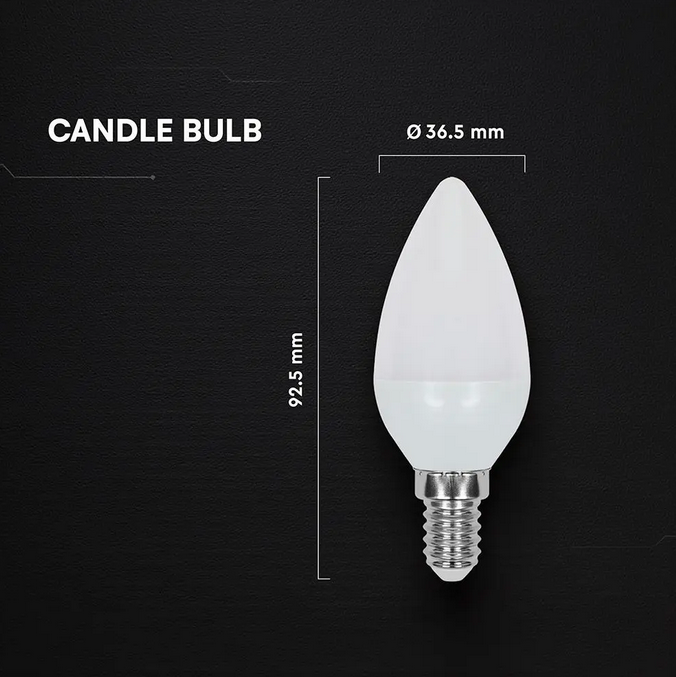 La lampadina V-TAC candela con attacco E14 e potenza 4.5W integra un chip CREE per garantire elevata efficienza luminosa e una luce fredda da 6500K, equivalente a tradizionali 40W. Compatibile per uso in interno in apparecchi con grado protezione IP20, offre un flusso luminoso di 470lm e un’ampia diffusione grazie all’angolo 180°, risultando ideale per ambienti che richiedono una luce brillante e uniforme.