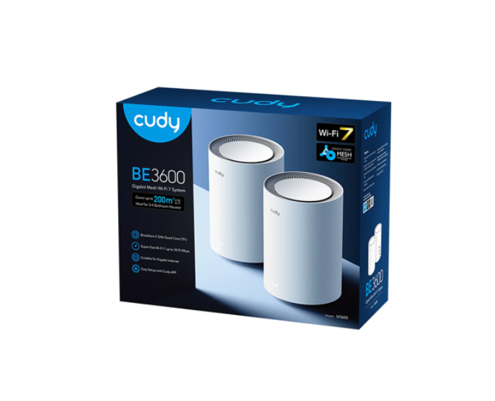 BE3600 Gigabit Dual Band Wi-Fi 7 Mesh Solution 2-Pack, 802.11be/ax/ac/a/b/g/n, 2882Mbps at 5GHz + 688Mbps at 2.4GHz, 3 x 10/100/1000Mbps Ports, Internal antennas, Zerotier/PPTP/L2TP/OpenVPN/WireGuard, MLO, MU-MIMO, Guest network, WPS, DDNS, IPv6, IPTV,
