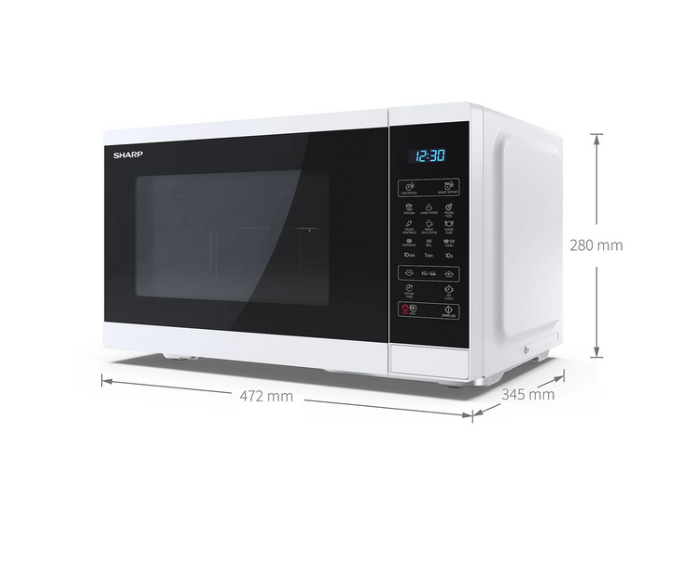 Capacità: 25 litri potenza microonde: 900W potenza grill: 1000W livelli di potenza microonde: 11 tipo di controllo: completamente digitale tipo interno: piatto rotante illuminazione interna: Sì facile da pulire funzione blocco per bambini funzione ECO colore involucro: bianco colore sportello: bianco/nero accessori inclusi: piatto rotante e griglia per grill