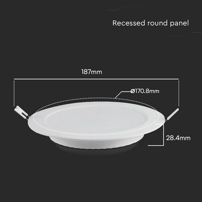 Dati Pannello Forma Pannello Circolare Tipo Installazione Incasso Sezione Incasso 155 mm Dati Fisici Grado di Protezione IP20 Colore Bianco Forma Rotonda Materiale Plastica Dimensione Prodotto 170.8x28.4 mm Temperatura di Esercizio -20 - 45 °C Packaging Scatola singola