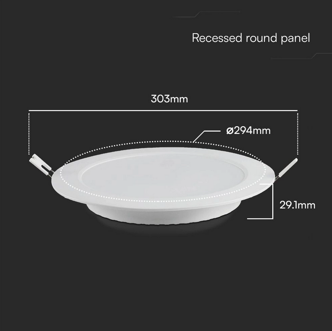 Dati Pannello Forma PannelloCircolare Tipo Installazione Incasso Sezione Incasso 280 mm Dati Fisici Grado di Protezione IP20 Colore Bianco Forma Rotonda Materiale Plastica Dimensione Prodotto 294x29.1 mm Temperatura di Esercizio -20 - 45 °C Packaging Scatola singola