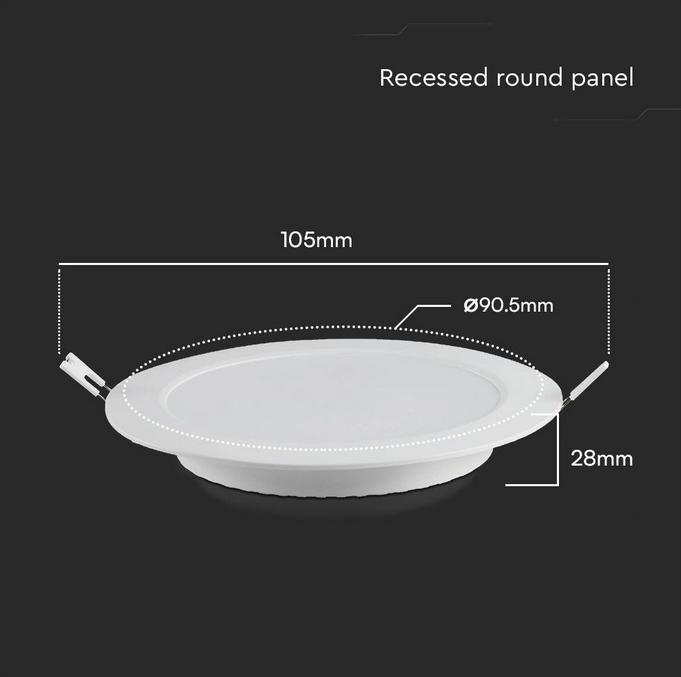 DatiPannello Forma Pannello Circolare Tipo Installazione Incasso Sezione Incasso 80 mm Dati Fisici Grado di Protezione IP20 Colore Bianco Forma Rotonda Materiale Plastica Dimensione Prodotto 90.2x90.2x28.2 mm Temperatura di Esercizio -20 - 45 °C Packaging Scatola singola