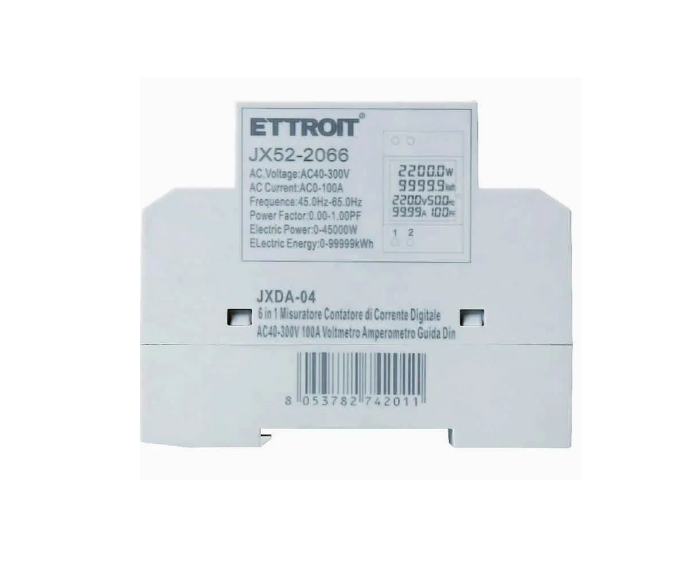 Display LCD: Ampio e di facile lettura Funzioni integrate: Voltmetro, amperometro, misuratore di potenza e contatore energetico Installazione semplice: Compatibile con guida DIN standard Applicazioni versatili: Monitoraggio e gestione del consumo energetico in ambienti residenziali e professionali