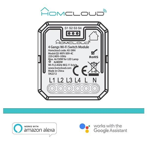 Modulo Pulsante/Interruttore Wi-Fi intelligente 4 canali da inserire nella scatola elettrica 503, comandabile da Smartphone e Vocalmente. Inserito all'interno della scatola elettrica trasforma i PULSANTI O GLI INTERRUTTORI tradizionale in pulsanti/interuttori wi-fi e ti permette di controllare e regolare prese elettriche o luci collegate ad esso da remoto Accesso remoto: Sempre tutto sotto controllo, ovunque tu sia. Controllo vocale: "Alexa, spegni la luce del soggiorno!" (compatibile sia con l'Assistente vocale Google che con l'Assistente vocale Amazon Alexa). Programmi e Timer: Accendio spegni le luci ad orari prestabiliti creando scenari e automazioni all'interno dell'App. Condivisione: Scegli con quali membri della famiglia condividere il dispositivo prescelto. Configurazione rapida: Per connettere l'interruttore allo smartphone servono meno di 4 minuti dopo averlo connesso alla corrente elettrica.