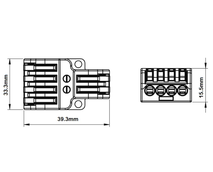 Connettore universale 2 poli in ingresso 4 poli in uscita. Tensione massima 250V e corrente massima 32A. Sezione cavi 0,5mm²-4mm².