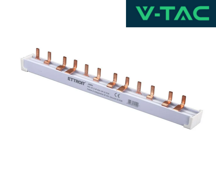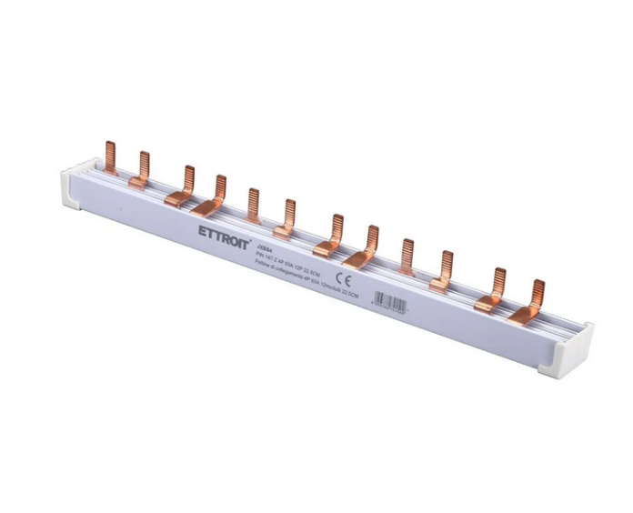 Pettine di Collegamento ETTROIT JXBS4 è la soluzione ideale per connettere in modo sicuro e affidabile dispositivi elettrici modulari su barra DIN. Con una capacità nominale di 63A e una lunghezza di 22,5 cm, questo pettine a 4 poli è progettato per adattarsi a 12 moduli, garantendo un'installazione ordinata e professionale. Realizzato con materiali di alta qualità, offre resistenza e durata per soddisfare le esigenze di qualsiasi sistema elettrico.