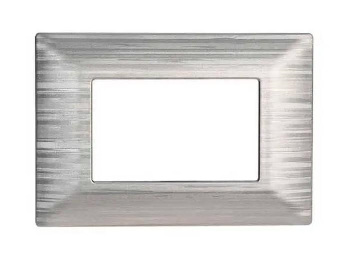 Placca 3 moduli compatibile serie Starlight Ettroit compatibile Vimar Plana, realizzata in plastica colore argento satinato (silver).