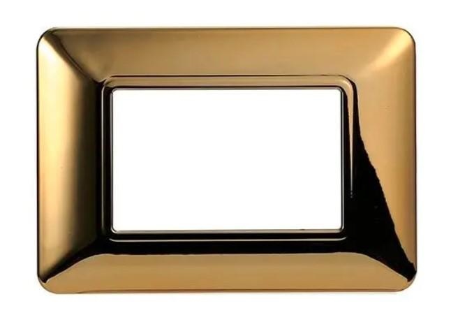 Placca compatibile Bticino Matix 3 moduli realizzata in plastica colore oro lucido.