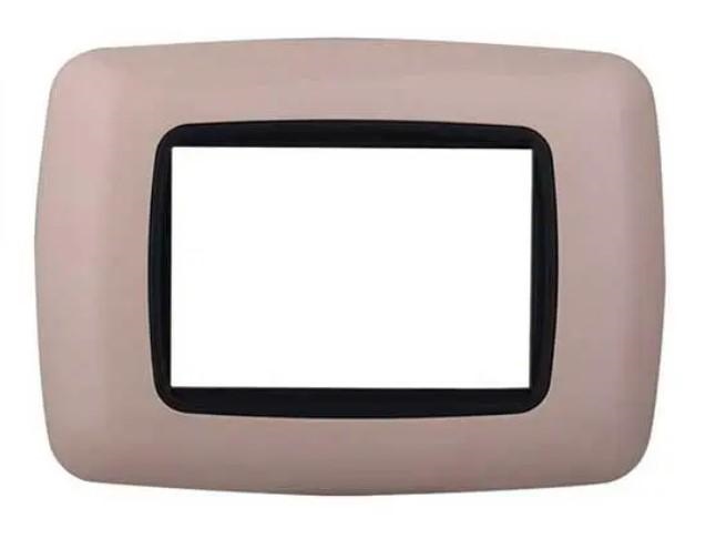 Placca 3 moduli compatibile Serie Space Ettroit compatibile Bticino Livinglight, realizzata in plastica effetto bombato colore sabbia.