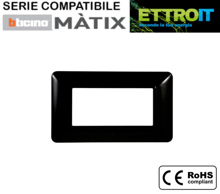 Placca in plastica nera 4 posti Compatibile con BTicino® Màtix