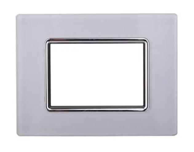 Placca da 3 moduli compatibile con la Serie Space Ettroit e il sistema Bticino Livinglight, realizzata in vetro di colore bianco. Questa placca offre un tocco di eleganza e modernità, con una finitura lucida che garantisce resistenza a graffi e usura.
