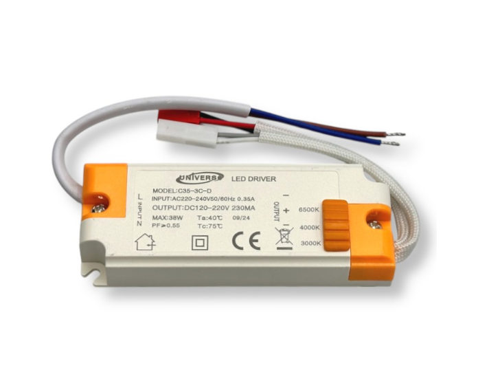 SPECIFICHE TECNICHE • Potenza: 42W • Tensione: AC 220-240V 50/60Hz • Fascio luminoso: 240° • Flusso luminoso: 3360 lm • Efficienza luminosa: 80 lm/W • Materiale: vernice di alluminio + acrilico• Colore: bianco • Copertura: opaca • Dimensioni: 620 x 400 mm • Grado di protezione: IP20 La particolarità di questa plafoniera è quella di incorporare diverse temperature (Luce Bianca Calda-3000K, Luce Bianca Naturale-4000K, Luce Bianca Fredda-6500K) colore da scegliere mediante dip switch posto all'interno della lampada