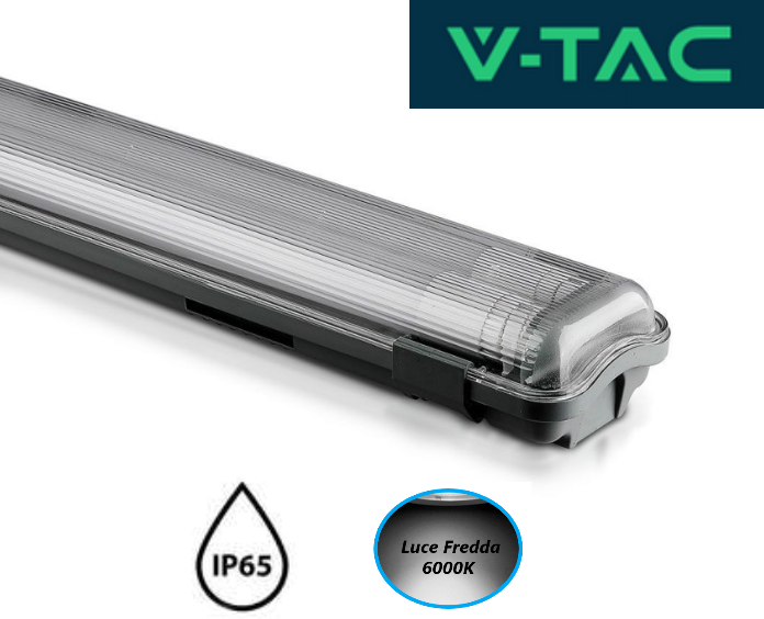 Tensione / Frequenza: 230V, AC:200-240V, 50/60Hz Tipo di collegamento: morsetti a vite Potenza: 2x22W Colore della luce: bianco freddo (6400K) Potenza (equivalente ad incandescenza): ~ 110W Flusso luminoso: 4.000Lm - 90LM/W Apertura fascio luminoso: 120° Corpo Materiale: plastica ABS/PC (Corpo-Diffusore in plastica) Classe di protezione: waterproofIP65 Dimensioni: 1560 x 112 x 63 mm Classe energetica: A+ Colore: grigio Dimmerabilità: NO Vita media: 20.000h CRI: >80 PF: >0.5