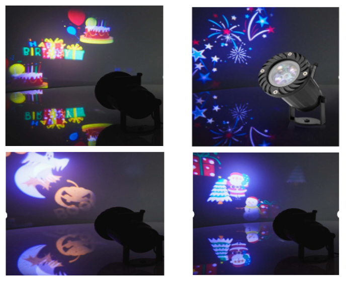 Questo proiettore LED per feste crea la giusta atmosfera proiettando motivi luminosi in movimento. È possibile scegliere tra quattro diversi temi: Natale, Capodanno, Halloween e Compleanno. Basta posizionarlo esattamente dove serve, sia all'aperto che al chiuso. Il cavo di alimentazione extra-lungo di 5 metri garantisce la massima flessibilità, anche quando la presa di corrente è lontana. Usarlo è facile: basta collegare il proiettore alla presa di corrente, fissarlo al suolo con il perno e poi godersi le decorazioni della festa. Qualsiasi area libera fino a 50m2 può diventare uno schermo di proiezione.
