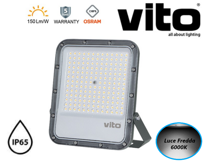 Proiettore LED RONA+ 100W 6000K 15200lm IP66 IK08 Chip OSRAM
