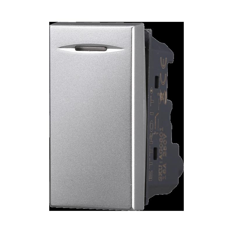 Pulsante unipolare 1P 16A serie Moon Ettroit compatibile Bticino Axolute colore grigio. Serve per attivare una funzione di servizio. Ad esempio suonerie, elettroserrature, relè. Illuminabile con ledAN2919, AN2922, AN2916, AN2921, AN2923.
