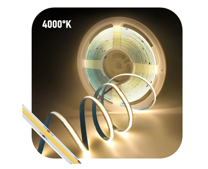 Striscia LED COB 10W/m 24V Luce Naturale 4000K 8mm 5mt