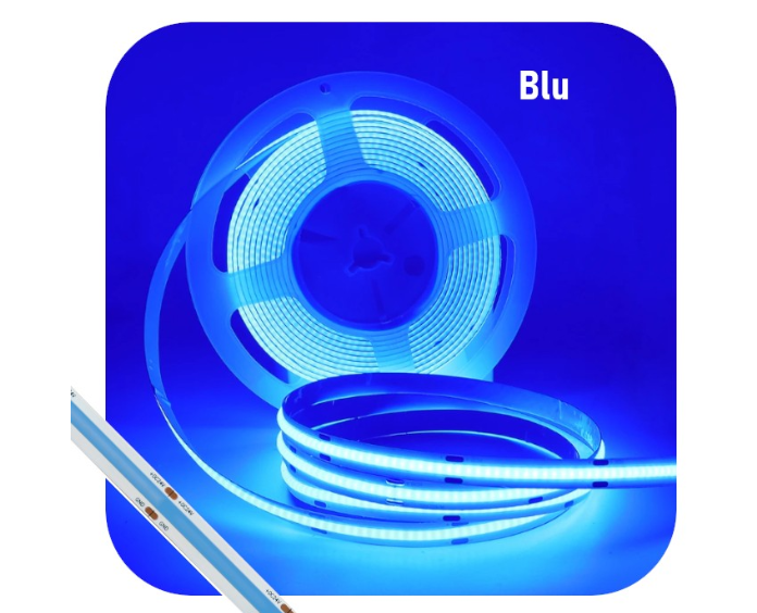 Striscia LED COB 10W/m 24V Monocolore Luce Blu 8mm 5 Metri