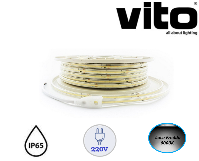 Striscia LED COB 220V 8mm 12W/m 1200Lm/m Luce 6500K IP65