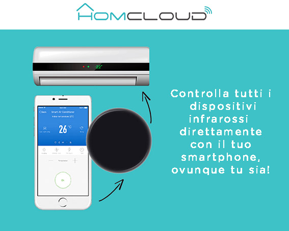 Accesso remoto: Sempre tutto sotto controllo, ovunque tu sia. Controllo vocale: "Alexa, temperatura salotto 20°C!" (compatibile sia con l'Assistente vocale Google che con l'Assistente vocale Amazon Alexa). Programmi e Timer: Accendi o spegni i dispositivi IR ad orari prestabiliti creando scenari e automazioni all'interno dell'App. Condivisione: Scegli con quali membri della famiglia condividere il dispositivo prescelto. Configurazione rapida: Per connettere il telecomando universale allo smartphone servono meno di 4 minuti. App di controllo Homcloud scaricabile gratuitamente da App Store o Google Play (compatibile anche con App Smart Life). Compatibile con Amazon Alexa e Google Home. (Controlla la lista dei comandi vocali aggiornata mese per mese scaricando l'allegato corrispondente o visitando i siti web di Amazon Alexa e Google Assistant)