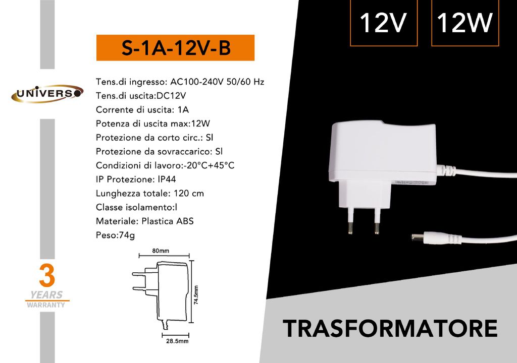 Trasformatore Alimentatore Stabilizzato 12V 1A 12W 220V Bianco