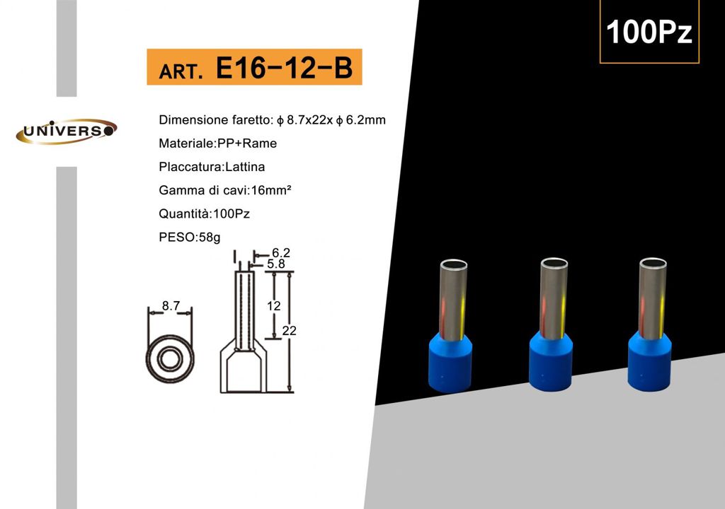 Tubetto Terminale Isolato per Cavi da 16mm Confezione 100pz